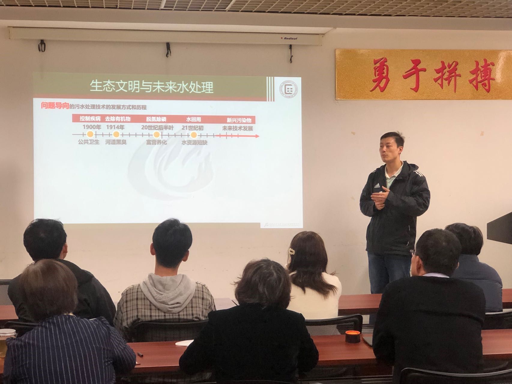 每位参赛选手根据自己的专业特点,设计教学方案,在现场使用ppt进行15分钟教学演示。金正宇老师、杨婷老师和胡杨老师分别从个人承担的课程中节选了部分内容进行讲授,展示了他们的教学组织能力和专业素养。金正宇老师选择《水处理工程案例分析》课程中的“生态文明与未来水处理”一节,彰显了生态文明思想在专业领域的引领作用。杨婷老师则以《环境学导论》中的“大气环境”一节为主,详述了气候变化下的大气环境表现。胡杨老师从《免疫学》课程中的“树突状细胞”形态切入,在生物的结构-功能一致性的思维观念下,解析了抗原提呈的细节过程。