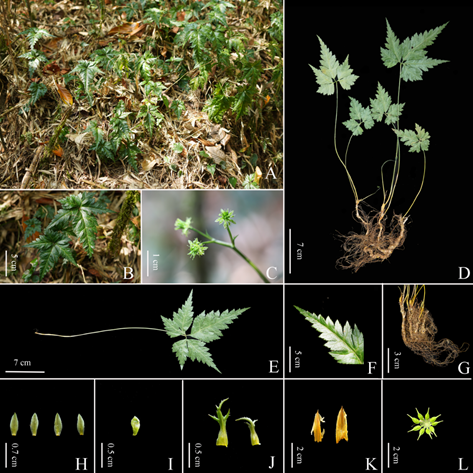 龙春林教授团队联合高黎贡山国家级自然保护区保山管护局等单位在高黎贡山南延地段发现的极度濒危黄连属植物新种——南高黎贡黄连(Coptis austrogaoligongensis C. L. Long & Z. Cheng, sp. nov.;图1)。《人民日报》客户端、新华网、人民网、云南网、新重庆、央视新闻等各大媒体也纷纷报道该发现。