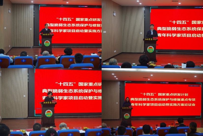2025年4月20日,“十四五”国家重点研发计划“典型脆弱生态系统保护与修复”重点专项2024年度青年科学家项目群启动暨实施方案论证会在江西农业大学顺利召开。本次会议由我校以及中国科学院植物研究所、北京师范大学、生态环境部卫星环境应用中心、内蒙古农业大学、中国科学院水生生物研究所、中国科学院生态环境研究中心、中国农业大学、中国科学院地理科学与资源研究所、西北农林科技大学联合主办,中国21世纪议程管理中心指导,江西农业大学、中国生态学学会青年工作委员会协办。江西农业大学校长魏辅文院士、副校长游金明教授,21世纪议程管理中心张永涛副主任,生态环境部科技与财务司马强处长及我校绅士网
