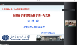 党委线上召开“课程思政建设”经验交流会(第四期)。交流会由学院党委书记张严教授主持,北京师范大学化学学院院长范楼珍教授主讲。