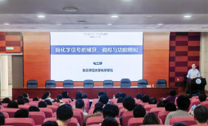 在文华楼西区一层报告厅举办了第三期“生环之声”学术大讲堂。北京师范大学化学学院院长、国家杰出青年科学基金获得者、ACS Sensors副主编毛兰群教授以“脑化学信号的捕获、调控与模拟”为题做学术报告。学院200余名师生参加了报告会,该讲座由学院院长张严教授主持。