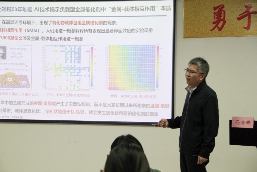 马金珠研究员还提出了构建自净城市的前瞻性理念。他指出,通过利用建筑外墙、车辆表面等作为催化表面,可以人工强化环境的自净能力,实现污染物的快速分解,为未来城市环境治理提供了新思路。马老师结合自身经历,与师生分享了科研工作的经验。他强调科研需脚踏实地、持之以恒;要明确研究方向,发挥个人优势,追求卓越,精益求精。同时,科研也应面向国家需求,解决实际问题。最后,他还强调了学术氛围的重要性,鼓励在困难中共同进步,将科研与个人兴趣相结合。
