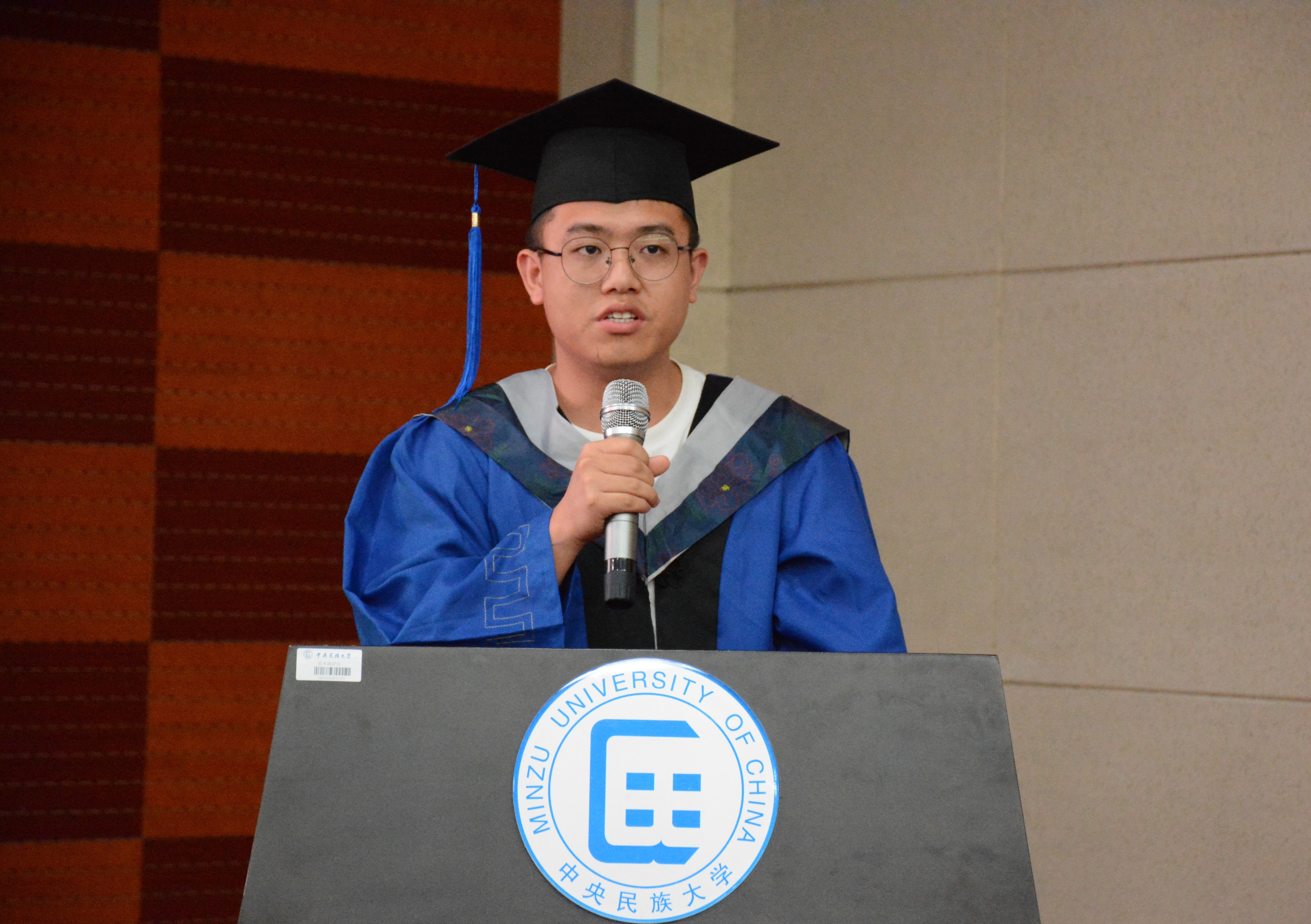 本科生毕业生代表赵悦汝同学及研究生毕业生代表程卓同学分别发言。他们向关爱学子、诲人不倦,给予殷切教导的师长表达出衷心的感激之情;回顾了校园生活的点点滴滴,讲述了各自在民大、在生环学院几年来的成长历程。寥寥数语,饱含着经自身实践而得到的颇多感悟,亦不乏对校门外生活的憧憬与向往。最后,两位毕业生代表向全体毕业生送上了诚挚的祝福,“愿大家佩戴着民大生环人的标签,奔赴五湖四海,绽放绚丽之花” “带着美美与共、知行合一的校训,以及青春如火、超越自我的生环精神,在新的岗位,建功立业”。