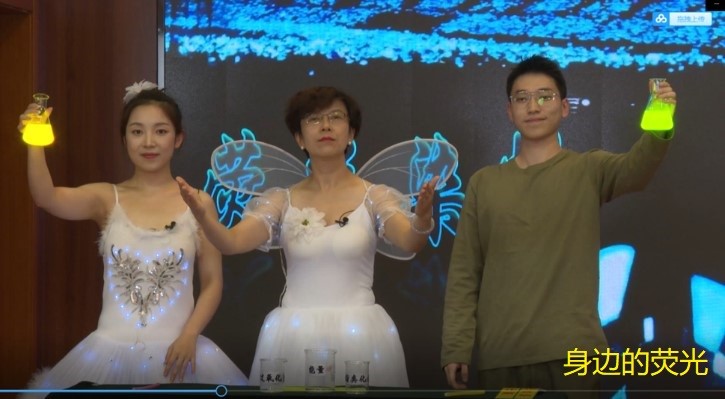 作品“身边的荧光”从身边植物、动物的荧光现象引入主题,阐释荧光现象本质,借助化学实验平台展示,结合新冠病毒检测热点,普及荧光在生活中的应用。最终团队以其出色的演技、扣人心弦的实验效果、生动紧凑的故事情节,排名第十三,荣获大赛二等奖。